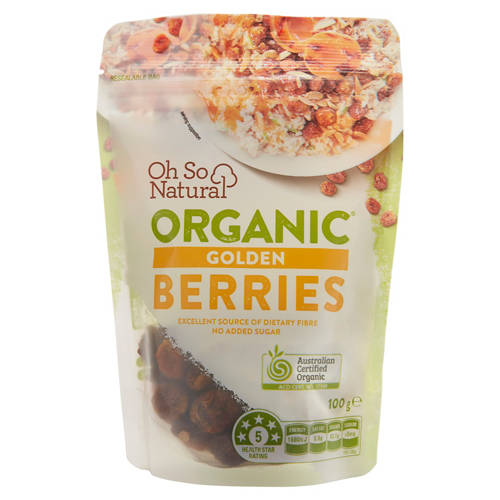 These organic golden berries are high in fibre, vitamin C and contains a source of antioxidants. This tangy fruit can be used in eaten as is or used in baked goods, and is suitable for vegetarians and vegans.