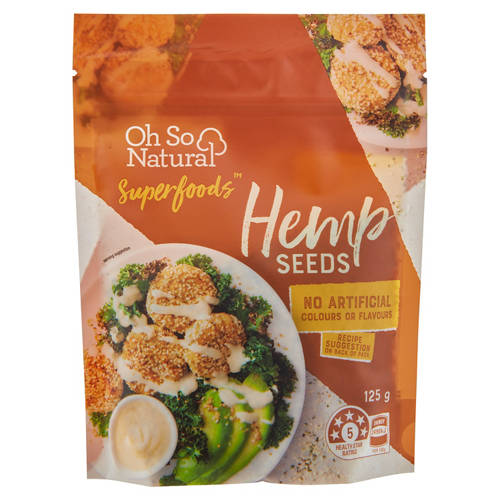 Add our Oh So Natural Hemp Seeds to your smoothies, baked goods or as a topper on savoury dishes like avocado toast. Contains no artificial colours, flavours or preservatives. Suitable for vegans and vegetarians.