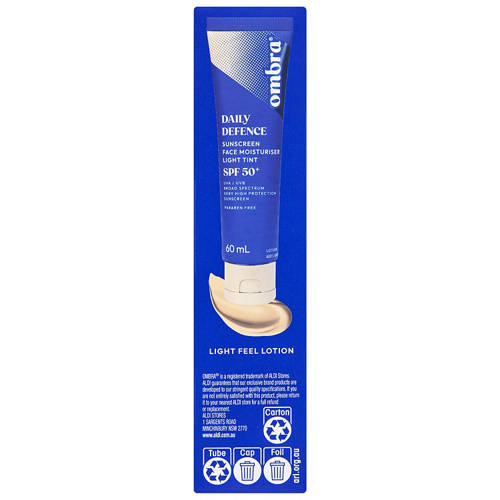 Daily Defence Face Moisturiser Sunscreen Light Tint SPF50+ 60ml