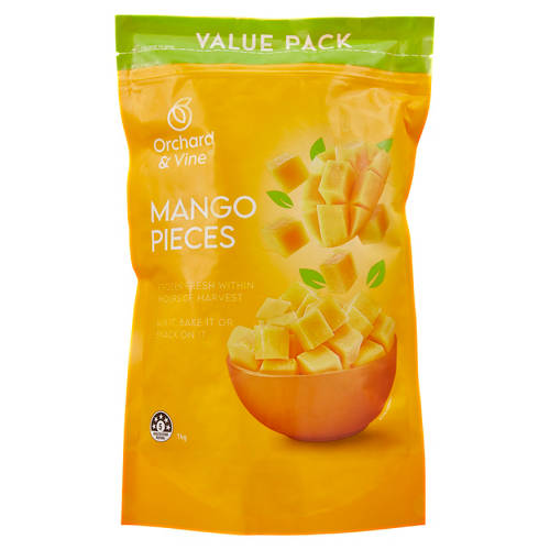 Orchard & Vine Mango Pieces are ideal for healthy smoothies, mango chia puddings, or a refreshing summer sorbet. Frozen fresh within hours of harvest. Every time you pick up a bag of Orchard & Vine Frozen Mango Pieces you can be confident that you are buying a delicious and safe product the whole family can enjoy.