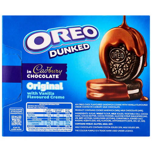 Classic Oreo cookies dipped in smooth, creamy chocolate for an extra indulgent treat. Perfect for Oreo lovers who want a little more chocolate in every bite.