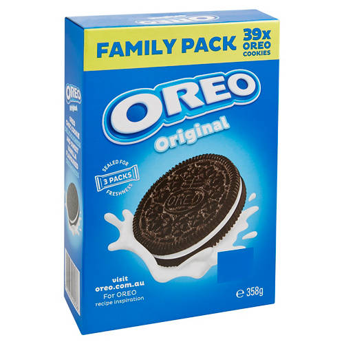 Oreo Original Family Pack is a choc cookie sandwich with Sweet Vanilla Creme. Sealed for freshness.