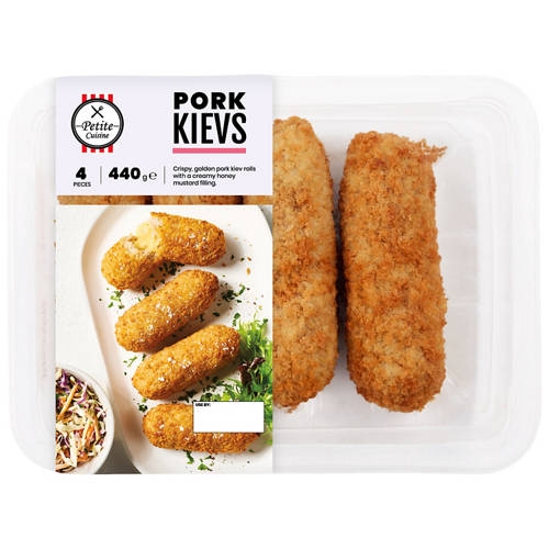 Indulge in our Pork Kievs, featuring 4 pieces of crispy golden pork rolls filled with a creamy honey mustard filling.