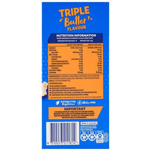 Quick and easy, and ready in minutes, each bag pops up light, fluffy popcorn, drenched in rich, buttery goodness. Perfect for movie nights, parties, or anytime you crave a seriously satisfying snack.