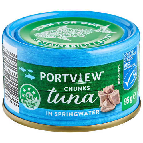 Tuna Chunks in Springwater are a good source of omega-3 fatty acids and protein, with no artificial colours, flavours, or preservatives. They're a versatile pantry staple that's ideal for salads or sandwiches.