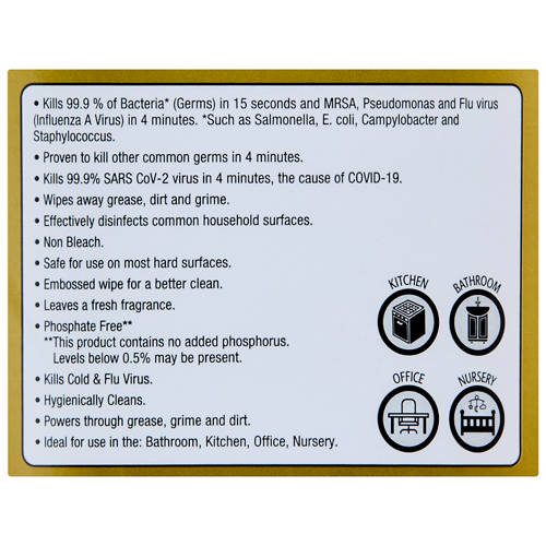 • Kills 99.9 % of Bacteria in 15 seconds - such as Salmonella, E. coli, Campylobacter and Staphylococcus.