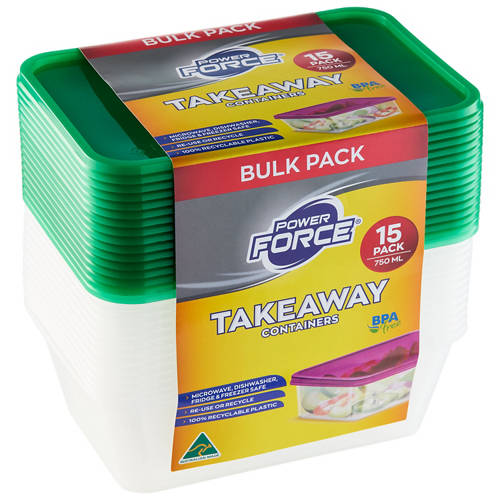 Convenient pack of 15 takeaway containers, ideal for food storage and transport. Available in navy, purple, green, blue, grey and white.