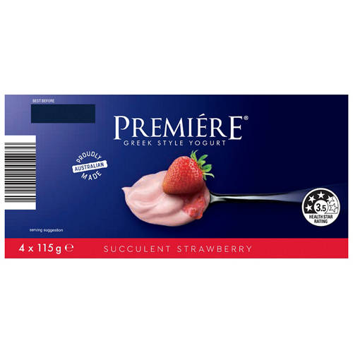 Strawberry flavoured smooth Greek style yogurt. Made with no artificial colours or preservatives.