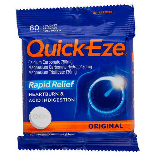 Quick Eze Original antacid tablets help provide rapid relief from heartburn and acid indigestion by neutralising stomach acid fast.
