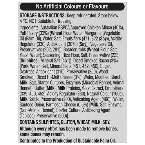 RSPCA Approved Chicken Sausage Rolls with Bacon, Melted Cheese & Parmesan.