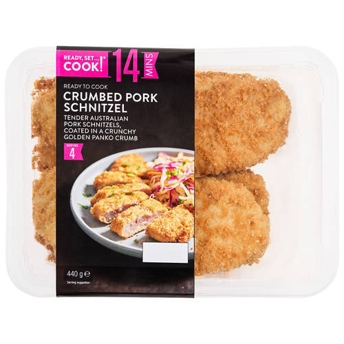 Tender Australian Pork Schnitzels coated in a crunchy golden panko crumb. Serves 4 and is ready in just 14 minutes.