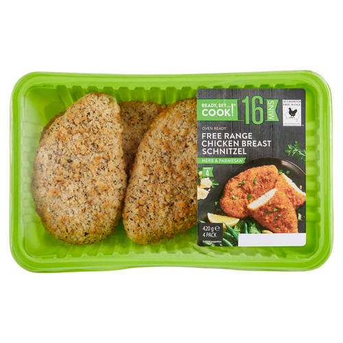 100% Australian Certified Free Range chicken breast, coated in a delicious herb and parmesan schnitzel crumb. Ready in 16 minutes.