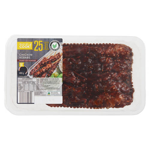These tasty Honey Soy RSPCA Approved chicken kebabs are a good source of protein with no artificial colours or added preservatives. They are coated with a delicious Honey Soy glaze making them perfect for family BBQs or quick easy dinners.