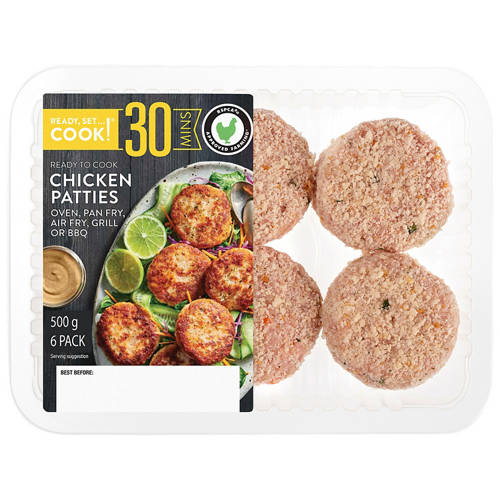 A tasty source of protein, these chicken patties  are perfect for the oven, pan or air fried, grilled or cooked on the BBQ.