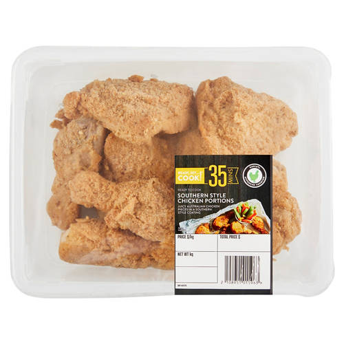 A mixture of Australian RSPCA Approved chicken portions in a delicious Southern Style coating.