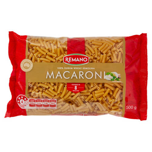 Enjoy Italian any night of the week with this pantry staple.Our macaroni are proudly made from Australian Durum Wheat Semolina. No artificial colours, flavours or preservatives.Good source of protein and dietary fibre.