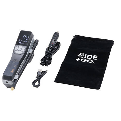 Max pressure up to 10.3 Bar (150 PSI). With LED display and lamp. Includes USB-C charging connection and 12V car charging adapter.