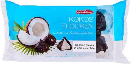 Add a tropical touch to your baking with Kokos Flocken. These are dark chocolate coated mountains of chewy coconut filling.