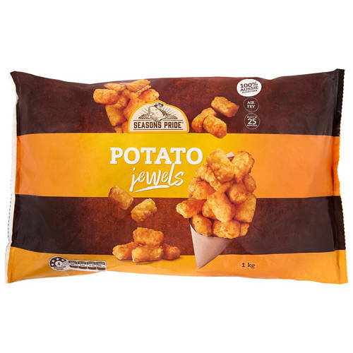 Potato Jewels are made with selected potatoes, shredded and prepared with vegetable oil.