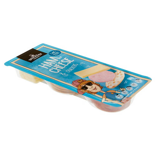 Indulge in a delicious snack with Ham, Cheese and Crackers – a beloved classic that perfectly combines the rich taste of savoury ham, the creaminess of cheese and the satisfying crunch of crackers for an irresistible treat! Contributes to the production of sustainable palm oil.