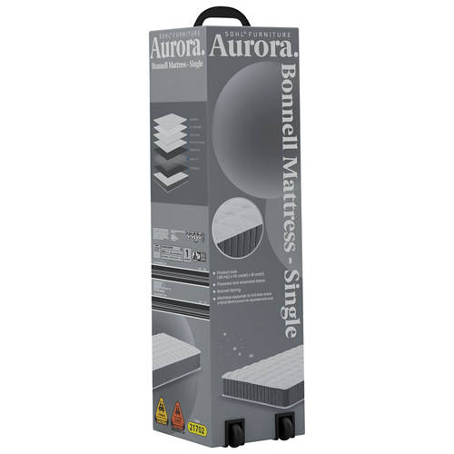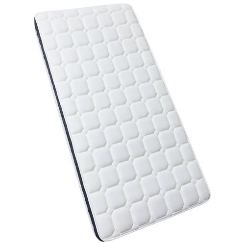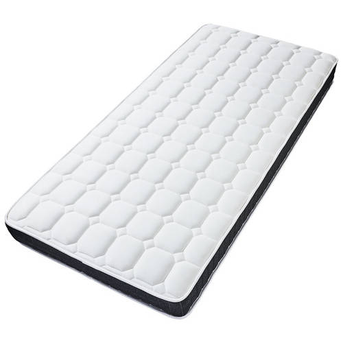 Supportive Bonnell spring mattress finished with soft polyester knit stretched fabric for a comfortable night's sleep.
