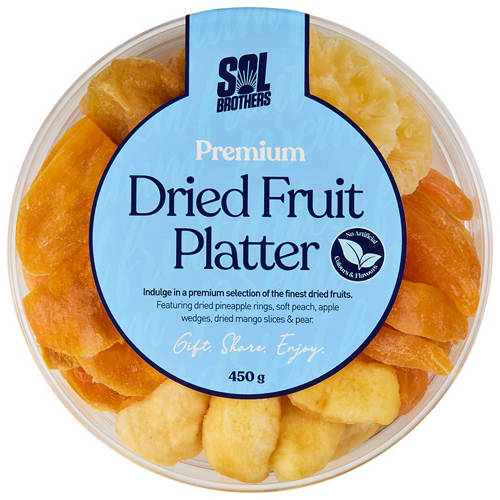 Enjoy a wholesome and delicious treat with the Dried Fruit Platter. Featuring a selection of dried pineapple rings, soft peach, apple wedges, dried mango slices and pear, this platter is perfect for gifting, sharing, or snacking anytime.