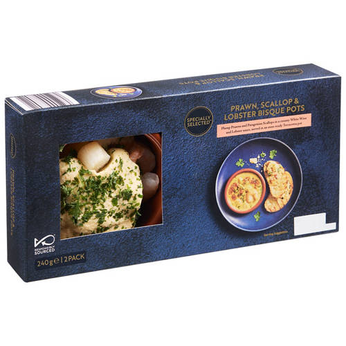 Level up your festive table with these rich prawn, scallop & lobster bisque pots. Creamy, luxurious seafood flavors ready to serve for a special holiday treat. Pairs wonderfully with a fuller-bodied Chardonnay.