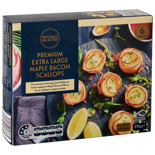 Bring a touch of indulgence to your Christmas table with these extra large scallops, wrapped in crisp maple-glazed bacon. Perfect as a gourmet starter or festive canapé.