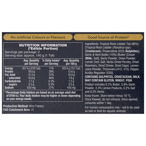 Tender and succulent lobster tails served with a garlic, lemon and herb butter glaze.