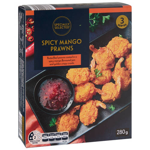 Butterflied prawns coated in a spicy mango flavoured jam and golden crispy crumb. A vibrant twist for your Christmas seafood platter or festive starters.