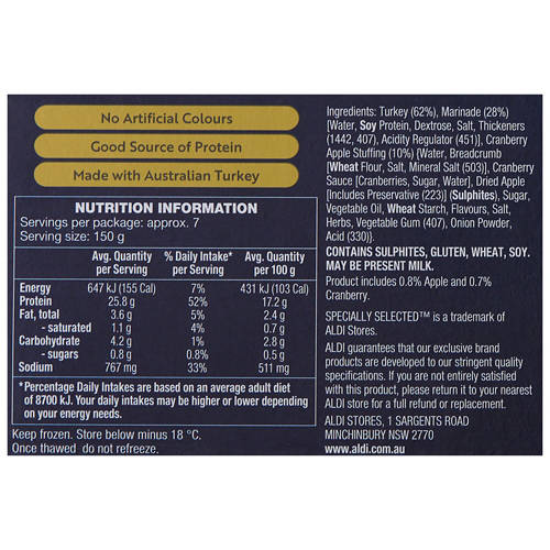A sweet and savoury Christmas classic. Premium boneless turkey breast filled with a festive cranberry and apple stuffing – full of holiday cheer. Made with Australian Turkey.