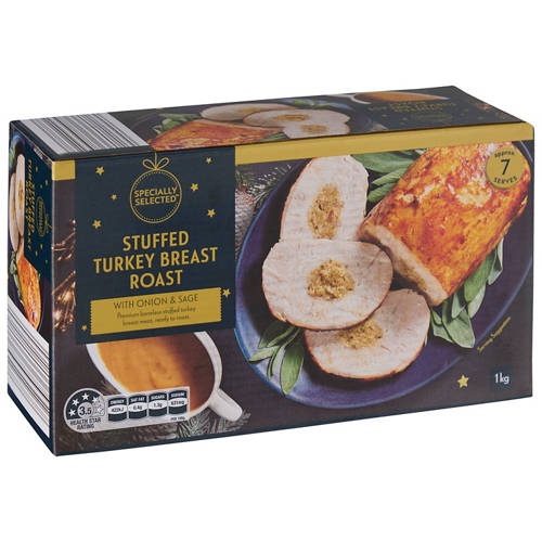 Premium boneless turkey breast meat, packed with classic onion and sage stuffing and ready to roast. Made with Australian Turkey. This roast is simple, hearty, and made for Christmas feasting.