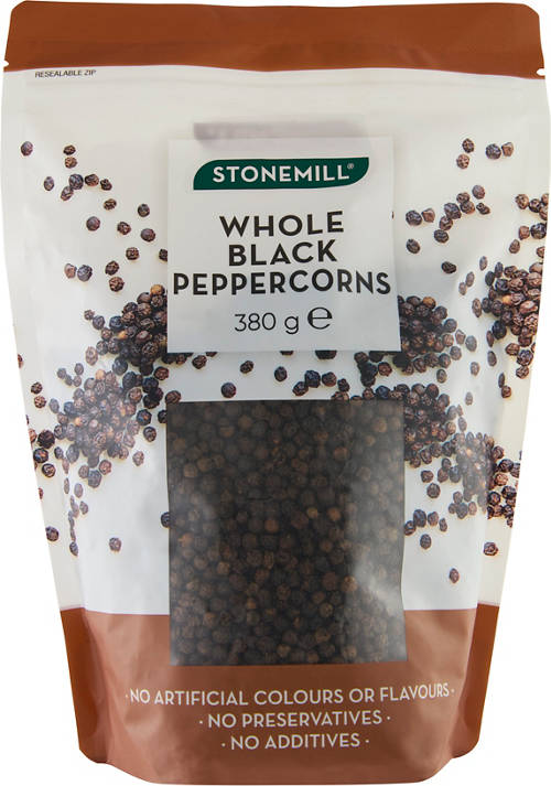 Great for refillable grinders! Stonemill Whole Black Peppercorns ca be used whole, crushed or ground to spice up all your favourite dishes!