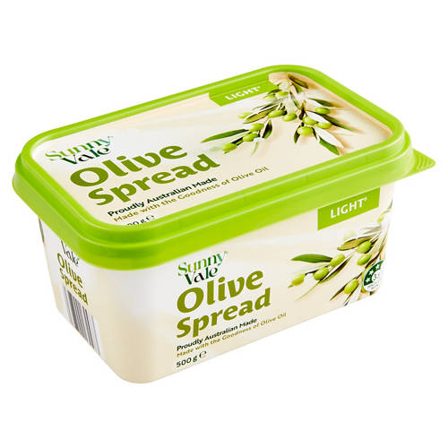Sunnyvale olive oil spread is proudly Australian made with no artificial colours or flavours. Reduced fat*
