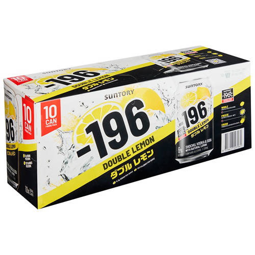 Savour the refreshing Suntory -196 Double Lemon in a convenient 10-pack. Perfect for gatherings or as a zesty mixer, serve chilled for ultimate enjoyment.