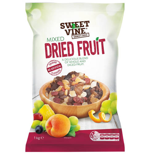 A delicious blend of whole and diced fruits - sultanas, raisins, apricots, currants, mixed peel, and dried pineapple. Perfect for popping in your Christmas fruitcakes, puddings, and holiday treats!