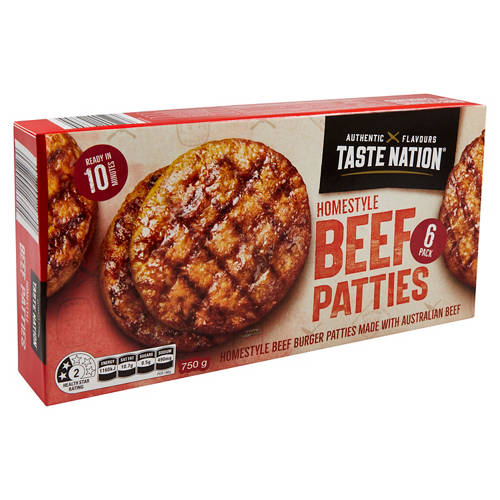Homestyle Beef Burger Patties. Made with Australian Beef.