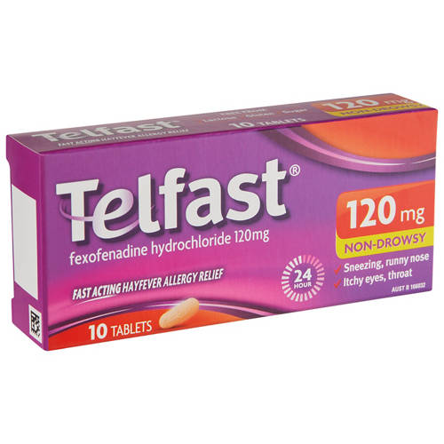 Telfast is an antihistamine medication commonly used to relieve symptoms of hay fever, such as a runny nose, sneezing and itchy or watery eyes. It can also help with other allergic conditions, including hives and itching. Known for its non-drowsy formula, Telfast provides relief without causing sleepiness, making it a popular choice for those needing to stay alert while managing their allergies.