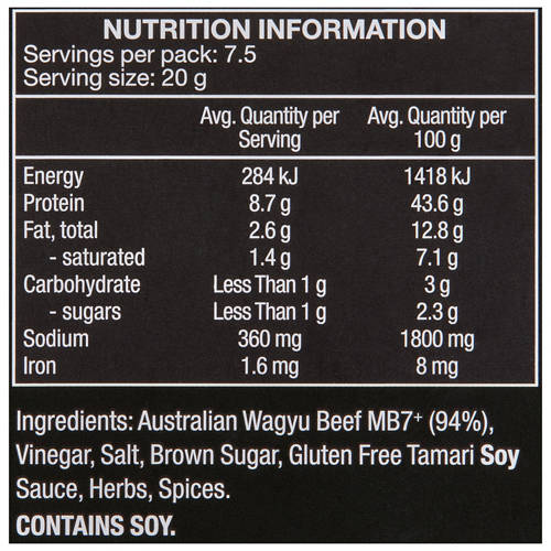 Savour the rich, tender taste of Luxury Australian Wagyu Beef Biltong. Made from premium Wagyu beef and carefully air-dried, this gourmet snack delivers bold flavour and a melt-in-the-mouth texture—perfect for sharing or enjoying on the go.