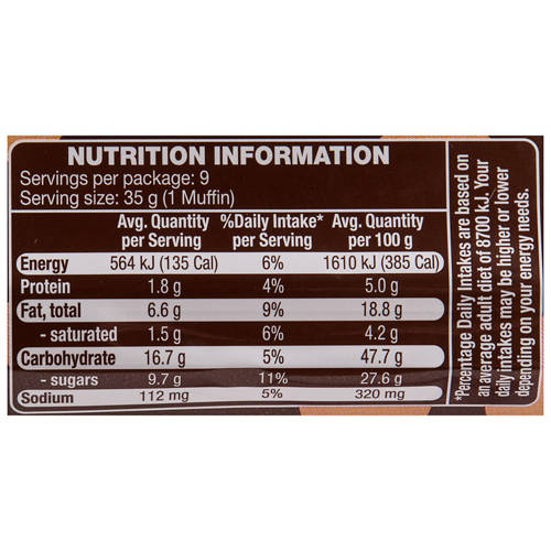 Mini Chocolate Chip Muffins 9 Pack 315g