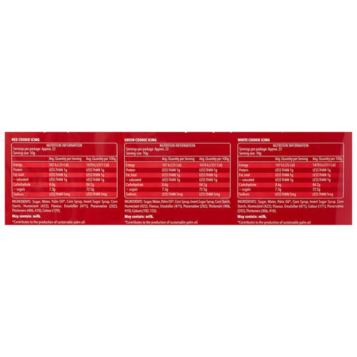 Make your holiday baking merry and bright for the festive season! With 3 ready-to-use, easy-squeeze tubes in Christmas colours red, green and white, they're perfect for decorating cookies for the whole family to enjoy.