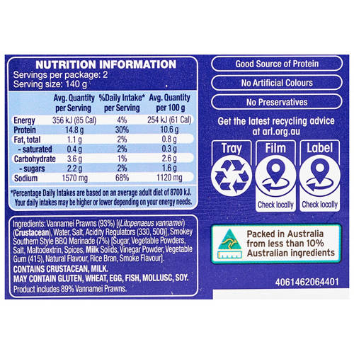 Smokey BBQ flavoured marinated prawns are a tasty seafood option for your next BBQ or served with a salad on the side at dinner time.