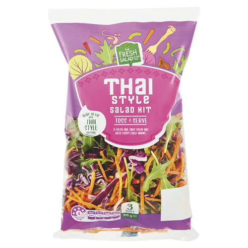 A refreshing mix of greens, crunchy vegetables, and a tangy Thai-inspired dressing, ideal as a side or a light meal.