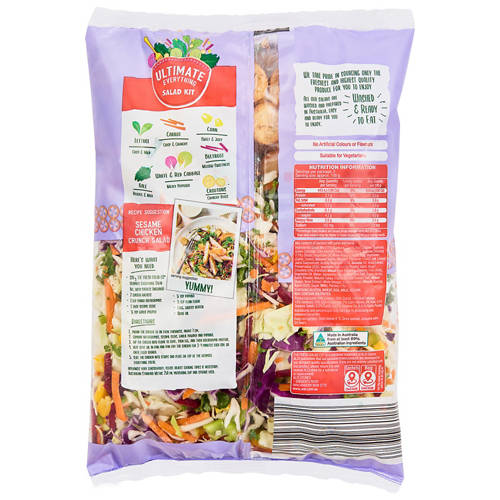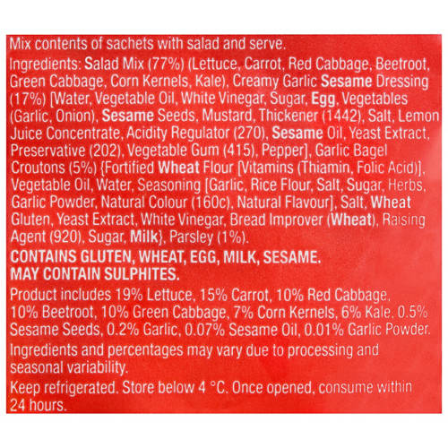 A ready-to-eat rainbow of seven salad ingredients with a creamy garlic & sesame dressing, topped with crunchy mini bagel croutons.