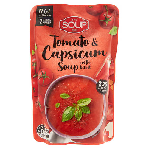 Delicious, creamy tomato, capsicum and basil soup perfect on a cold winter’s night. No artificial colours, flavours, or preservatives.