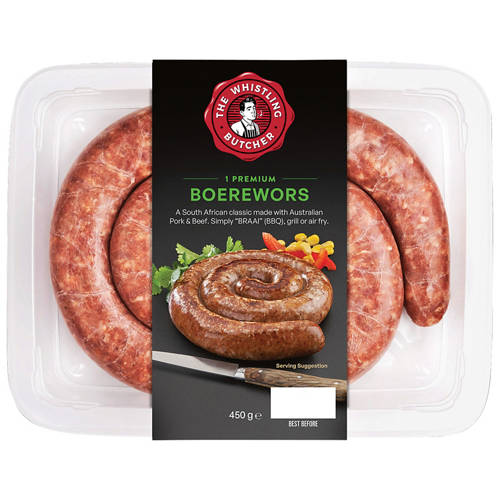 Freshly made with Australian coarsely ground Pork and balsamic and red caramelised onion