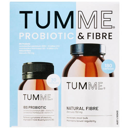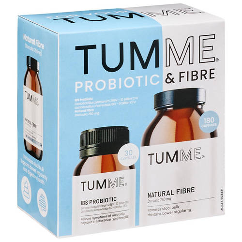 - TUMME Natural Fibre (180 capsules): Sterculia 750 mg for digestive support and regularity.