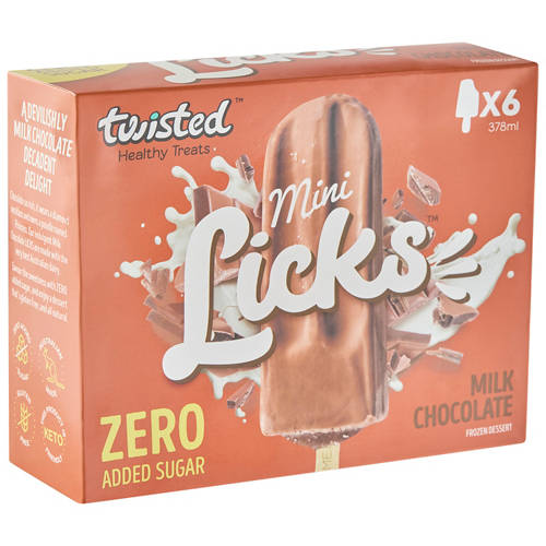Twisted Healthy Treat's Mini Licks are made with the very best Australian dairy. Savour the sweetness with a dessert that contains zero added sugar, gluten free and all natural.