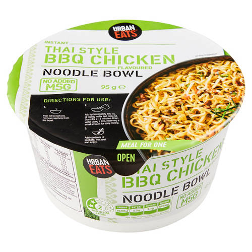 Our Urban Eats Thai Style BBQ Chicken Noodle Bowl is made with no artificial colours or added preservatives. Each bowl is packed with flavour, quick and satisfying. It's a perfect meal for one.
