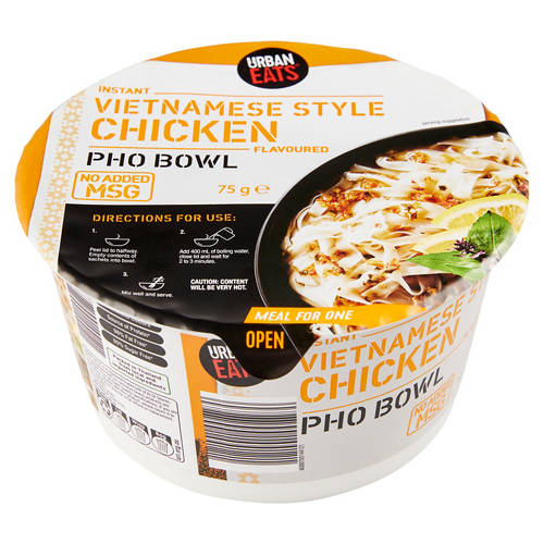 Our Urban Eats Vietnamese Style Chicken Flavoured Pho Bowl offers a quick and satisfying meal option, with no artificial colours or added MSG.